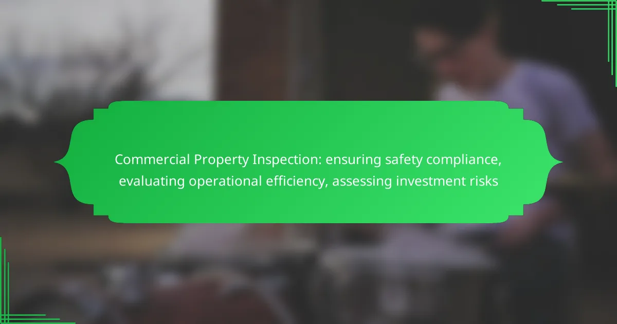 Commercial property inspections are vital for assessing safety compliance, operational efficiency, and investment risks. By systematically evaluating a property’s condition and adherence to regulations, these inspections provide property owners and investors with crucial insights that help safeguard their assets and enhance their value.
