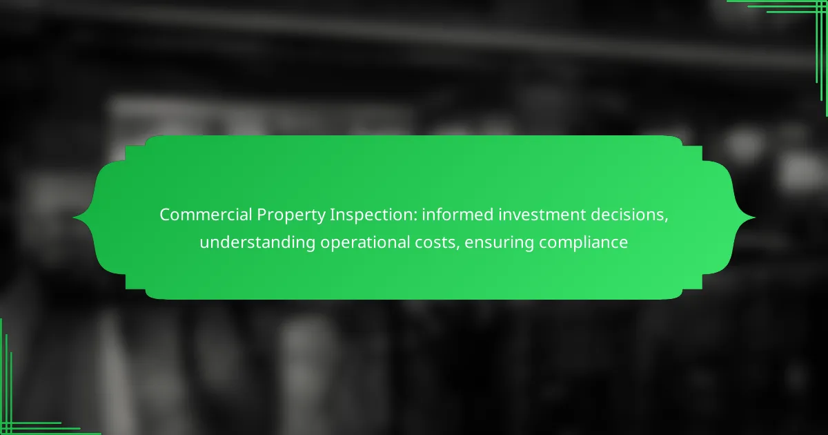 Commercial property inspections are vital for making informed investment decisions, as they uncover potential risks and assess property value. By understanding operational costs and ensuring compliance with regulations, investors can effectively manage their budgets and protect their investments. These inspections provide crucial insights that facilitate sound financial choices and safeguard against legal issues.