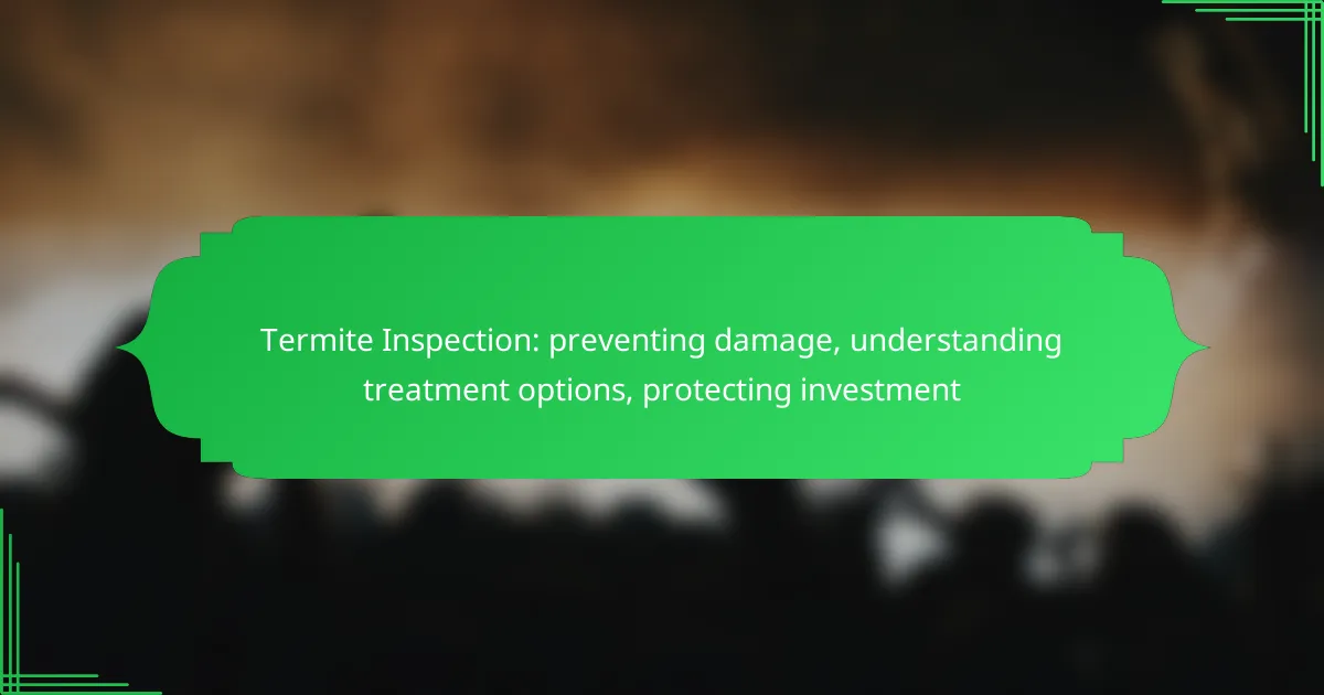 Termite inspections are essential for safeguarding your home against potential damage by detecting infestations early and evaluating structural weaknesses. By investing in regular inspections, homeowners can avoid expensive repairs and maintain their property’s value. Understanding the various treatment options available, such as liquid termiticides and baiting systems, is crucial for effectively addressing any infestations that may arise.